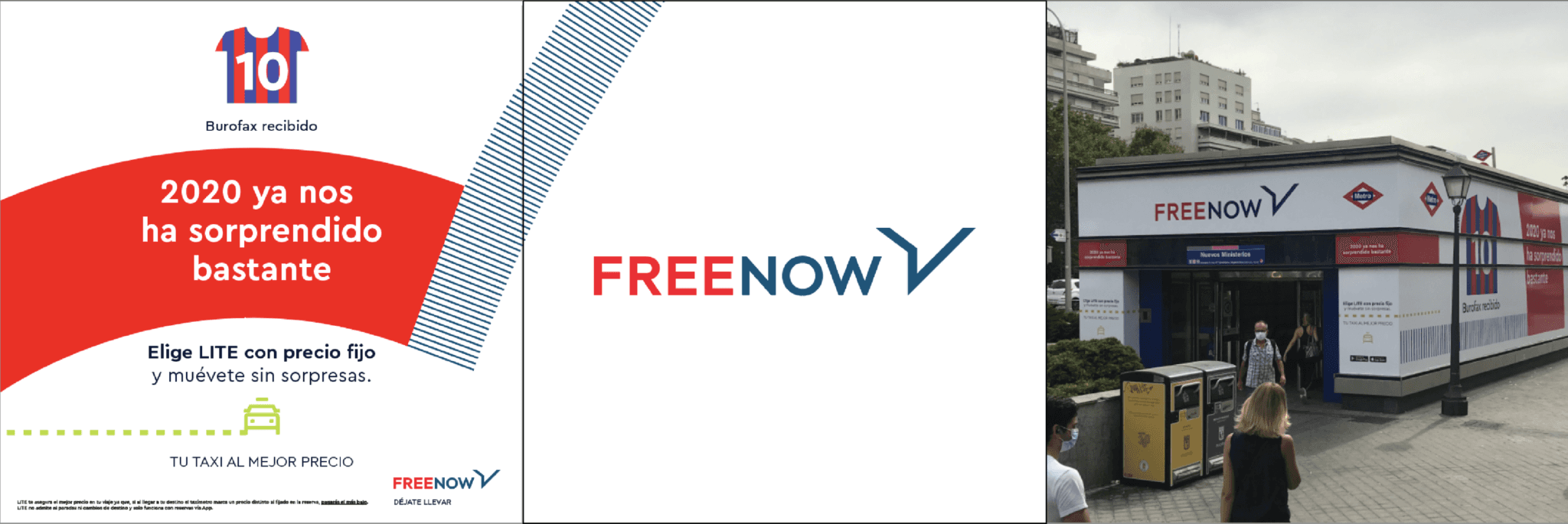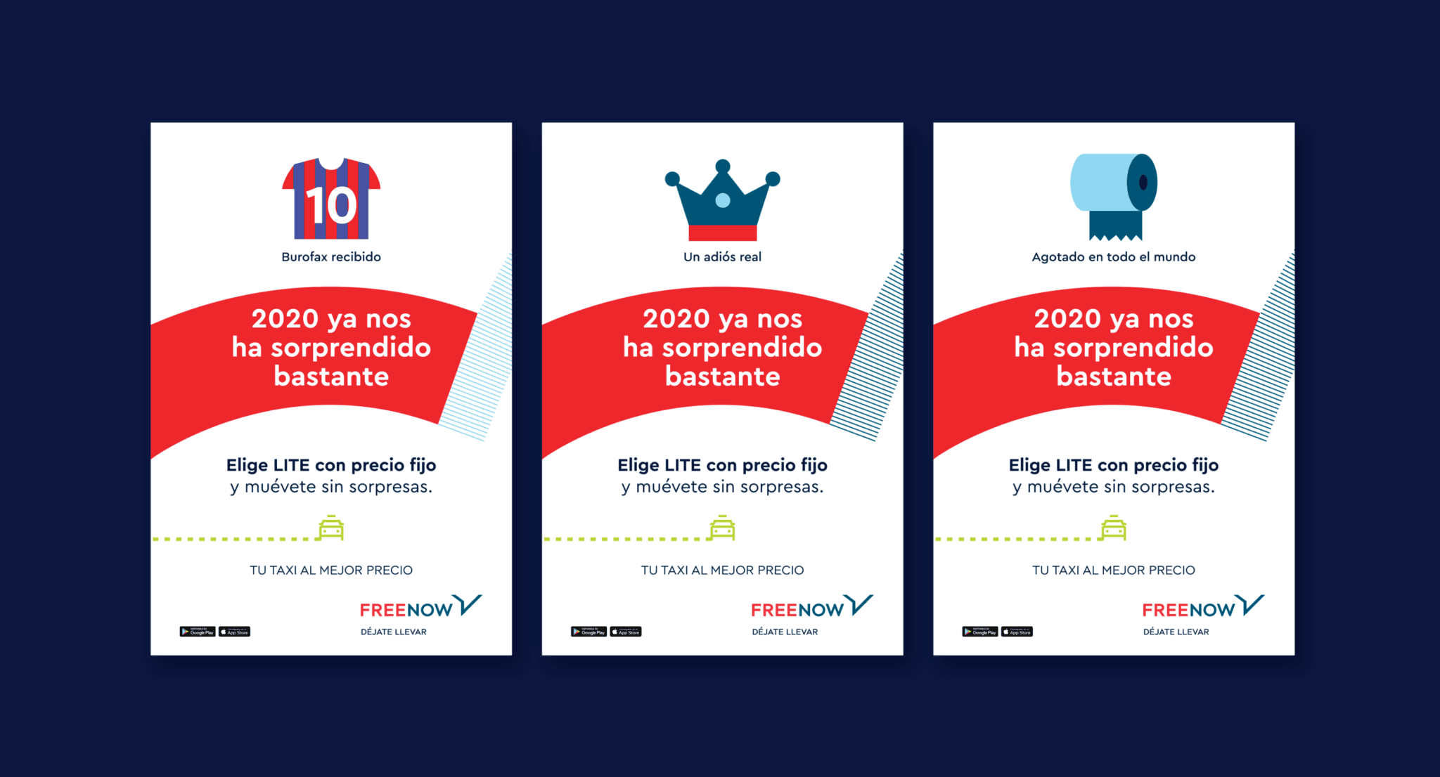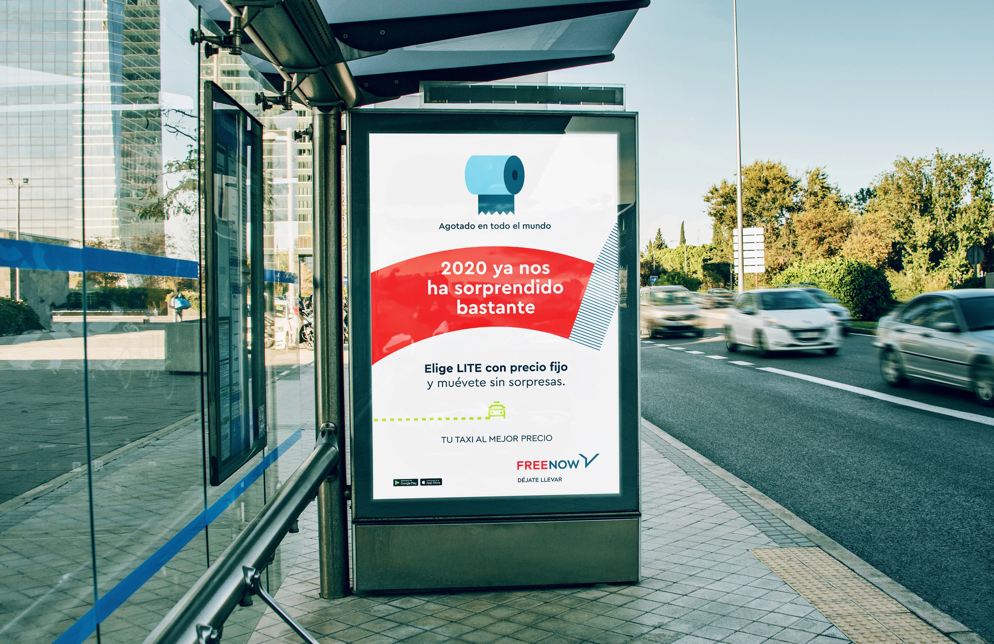 Para hacerlo lanzamos una campaña de exterior basada en la cantidad de sorpresas que el 2020 nos había dejado a todos, e invitándonos a vivir sin sorpresas a la hora de movernos gracias a una tarifa cuyo precio no variaba una vez contratada pasara lo que pasara. El Rey Emérito, el adiós de Messi o el fin de existencias de papel higiénico se convirtieron en protagonistas de una campaña que invitaba a los usuarios de Freenow a moverse sin sorpresas en su trayecto por la ciudad.